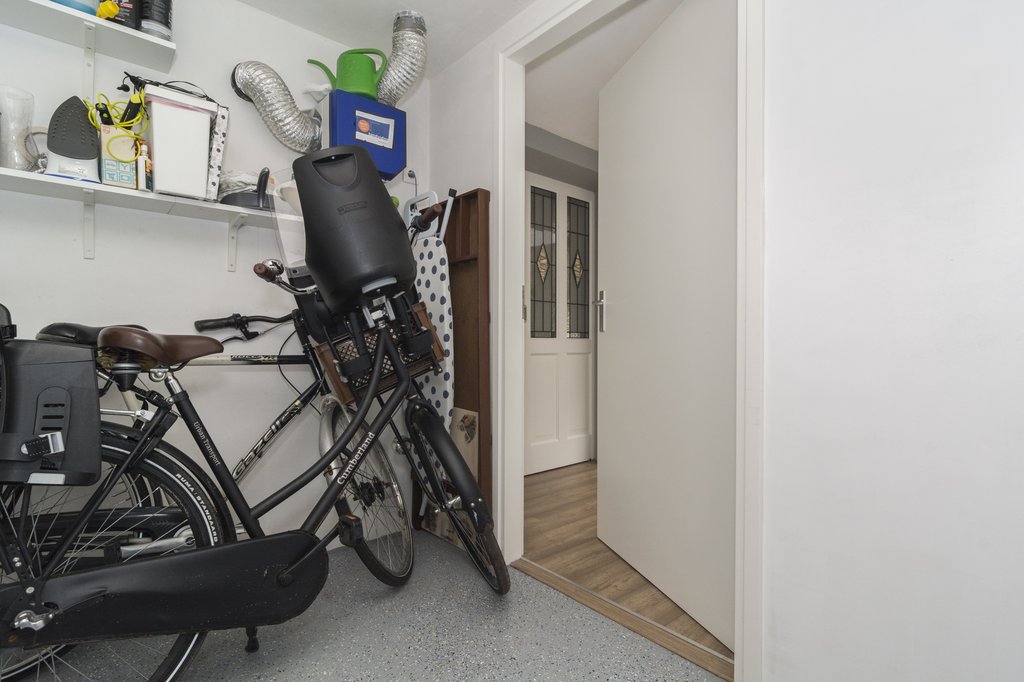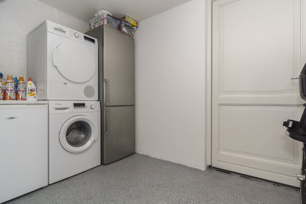 De berging (ca. 6m²) is voorzien van de aansluitpunten voor de wasmachine en droger, een bergkast waar opstelplaats voor de cv-ketel (Vaillant, 2016) is gesitueerd en een loopdeur die toegang geeft tot de oprit.