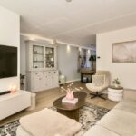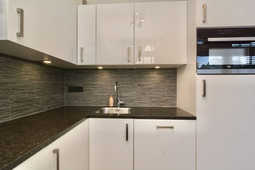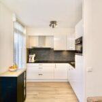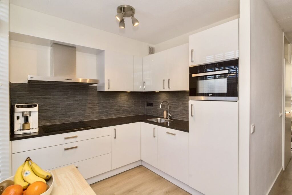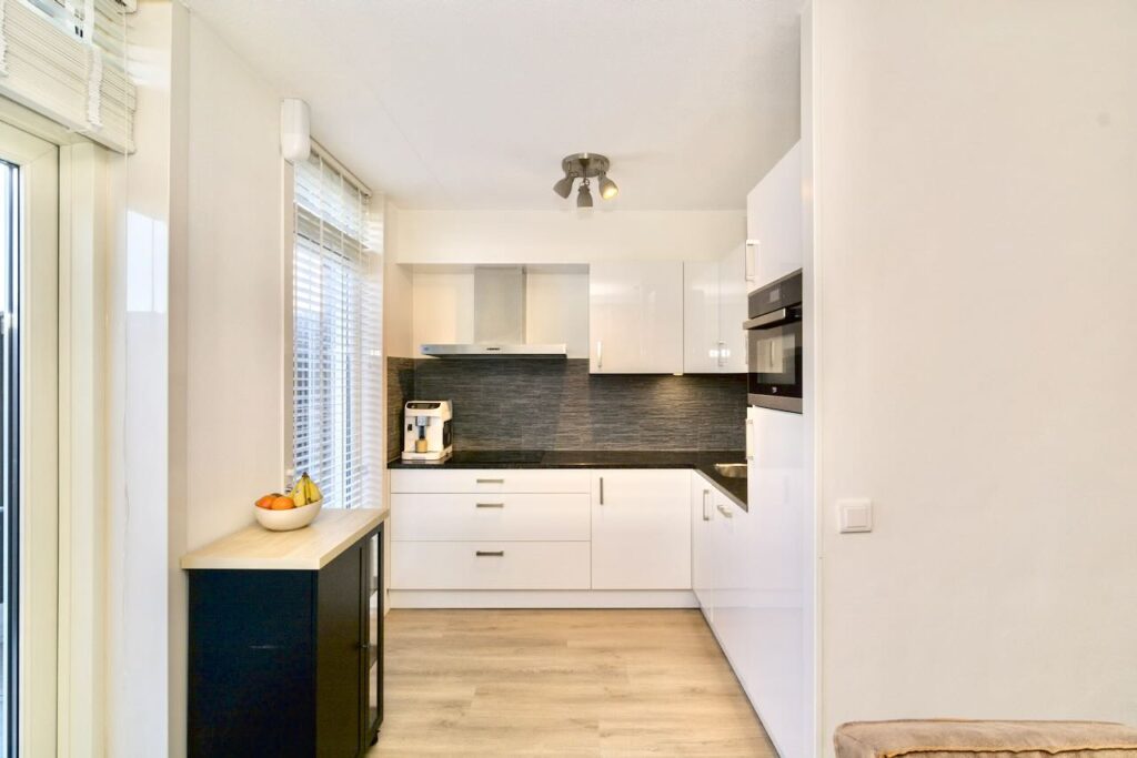 Via de fraai aangelegde tuin bereik je de hal/entree met pvc-vloer, unit vloerverwarming, meterkast en toegangsdeur naar de woonkamer. Deze lichte en ruime woonkamer is voorzien van pvc-vloer met vloerverwarming, strak stucwerk wandafwerking, airco en biedt volop leefruimte en staat in open verbinding met de keuken. De open keuken in heeft een eigentijdse inrichting in hoekopstelling met composiet werkblad, inductie kookplaat, afzuigkap, vaatwasser, koelkast en combimagnetron.