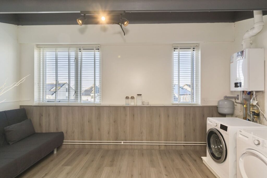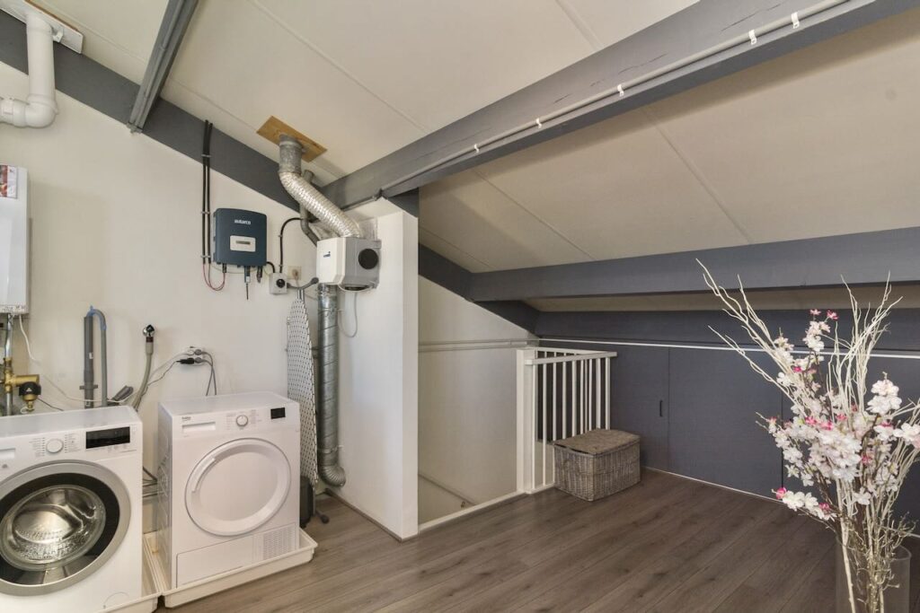 Via een vaste trap bereik je de zolderverdieping. Deze open ruimte is voorzien van laminaat vloer, CV-opstelling (HR combi CV Remeha Avanta 2024), aansluitpunten voor wasmachine/droger, omvormer zonnepanelen en bergruimte achter de knieschotten. Met een kleine aanpassing eenvoudig om te toveren als vierde slaapkamer, thuiswerkplek of hobbyruimte.
