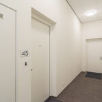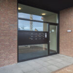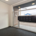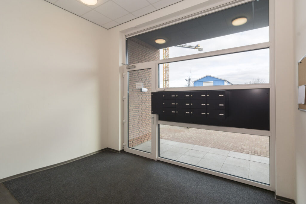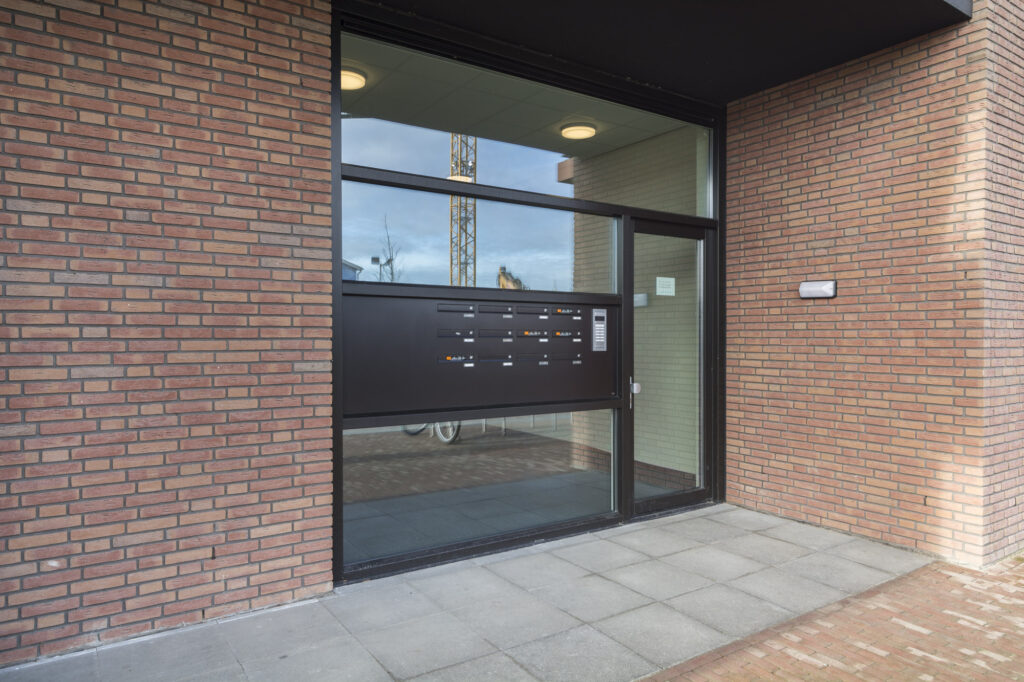 Verzorgde gemeenschappelijke entree met brievenbussen en bellentableau, trappenhuis, meterkast en lift.