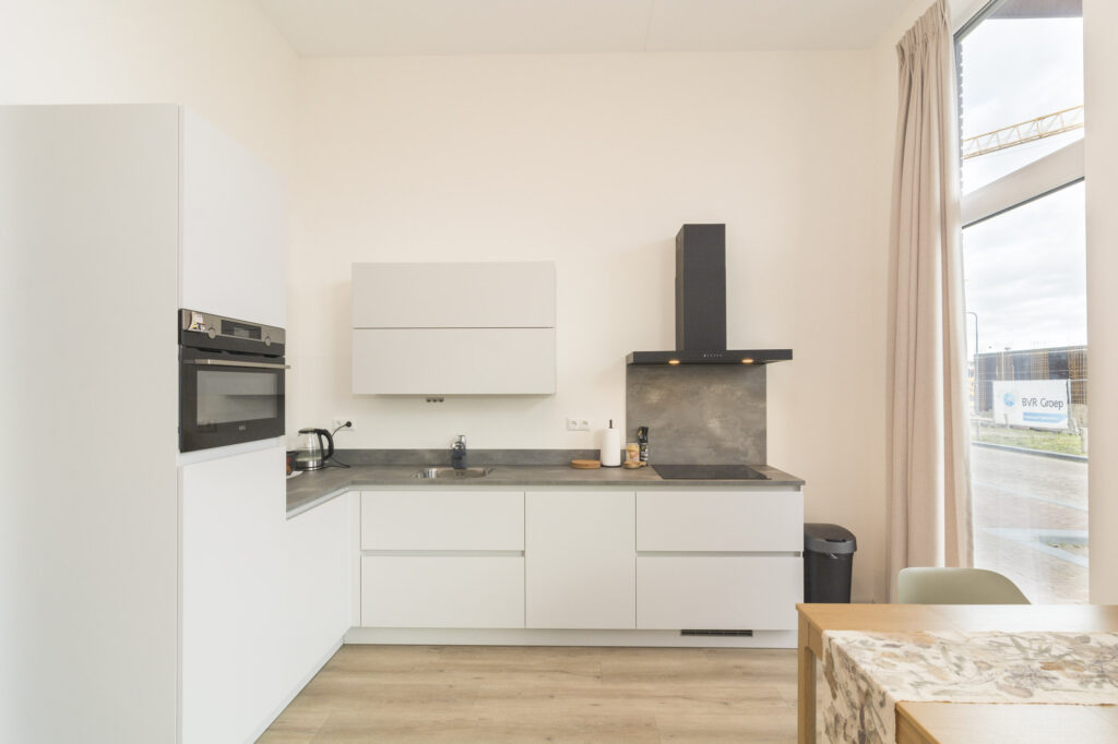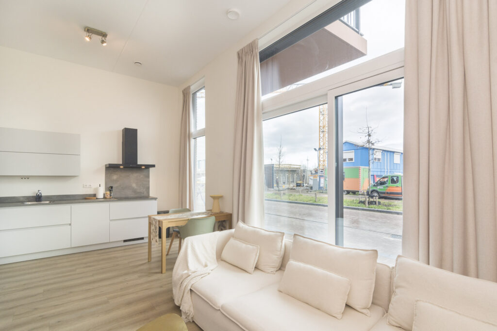 In dit duurzame appartementencomplex aan de entree van de nieuwe, moderne wijk Stadsoevers ligt deze compacte woning die dankzij het hoge plafond (3,60 m) en de grote raampartijen ruim en licht aanvoelt.