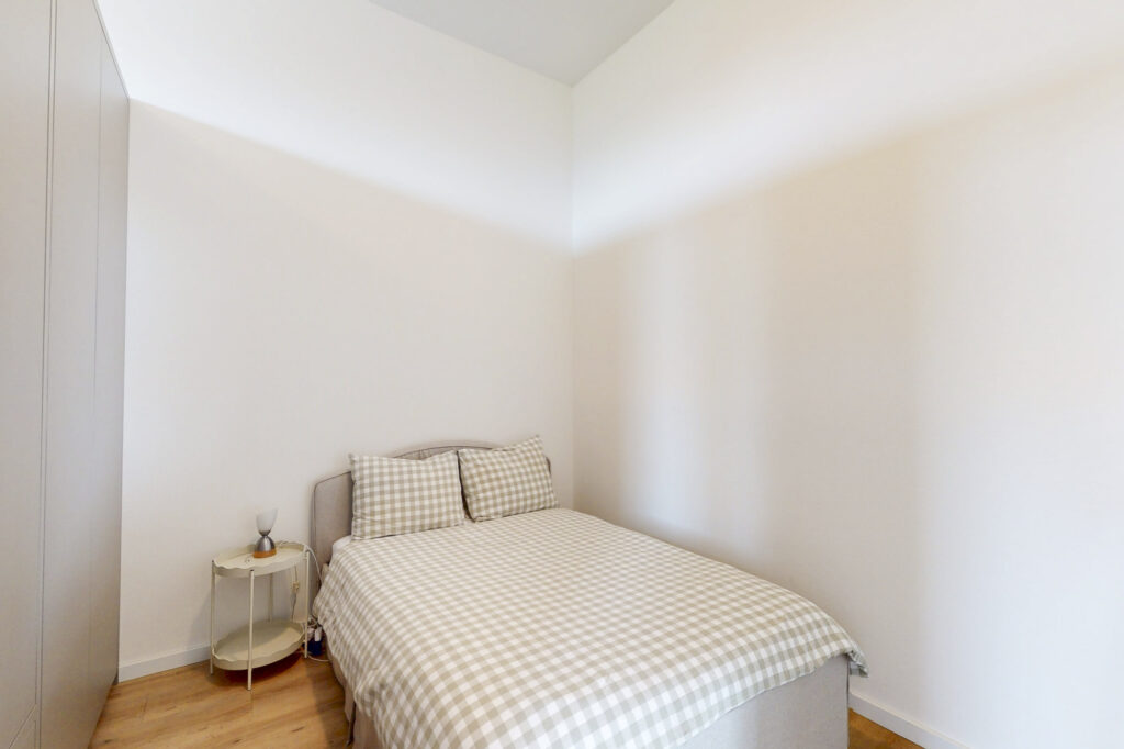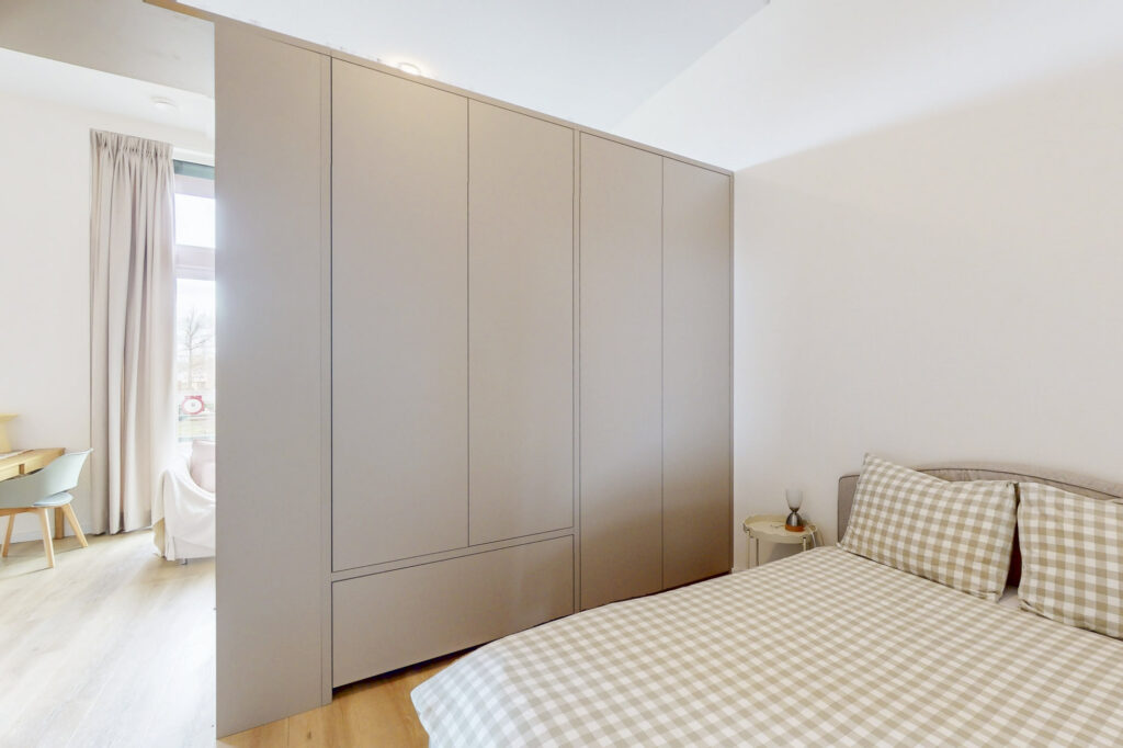 Slaapkamer: (ca. 11m2) voorzien van pvc-vloer met vloerverwarming, glasvlies behang wandafwerking en op maat gemaakte kastruimte met luxe afwerking.
