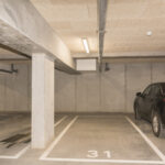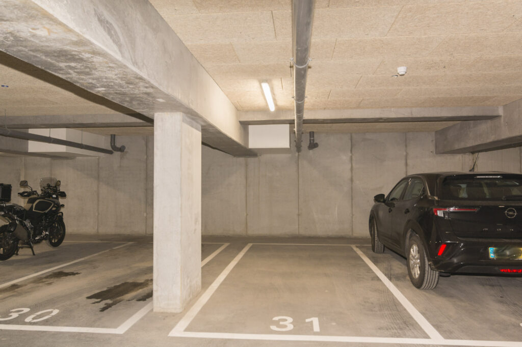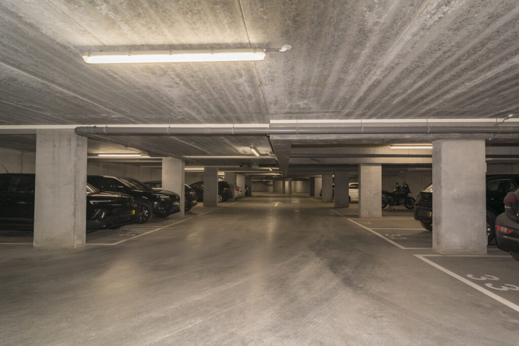 Eigen parkeerplaats in de parkeerkelder in het appartementencomplex.