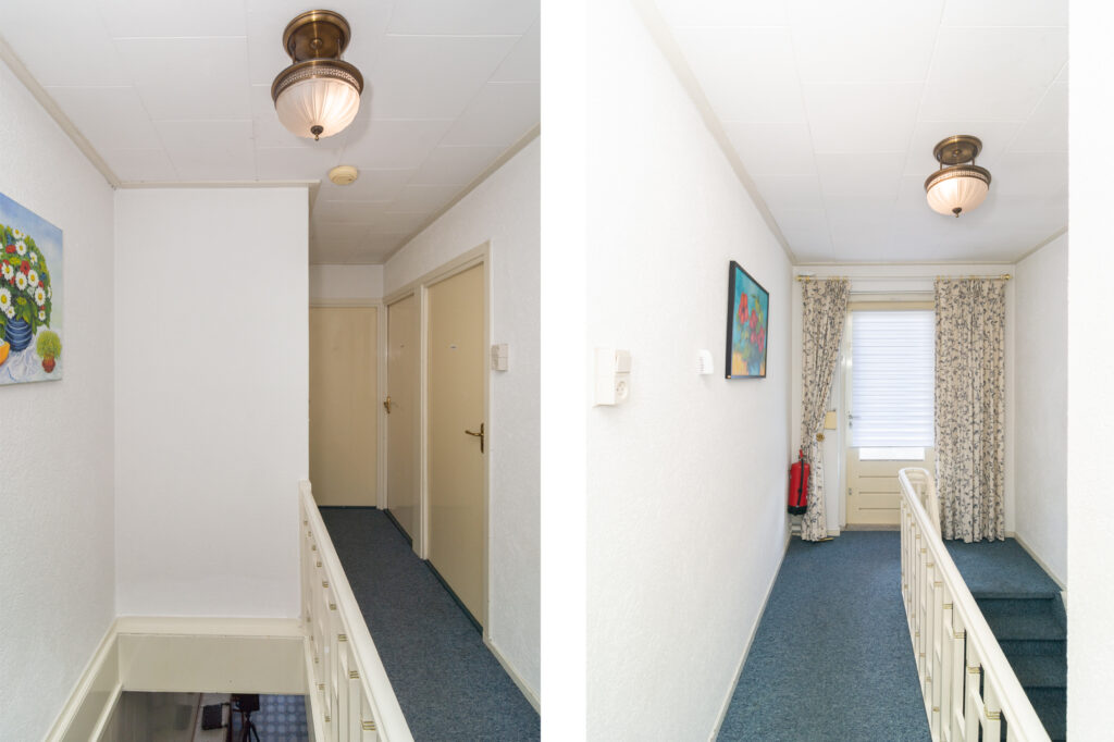 De royale overloop geeft toegang 3 ruime slaapkamers, eenvoudige badkamer en deur met rolluik naar het platte dak/dakterras.