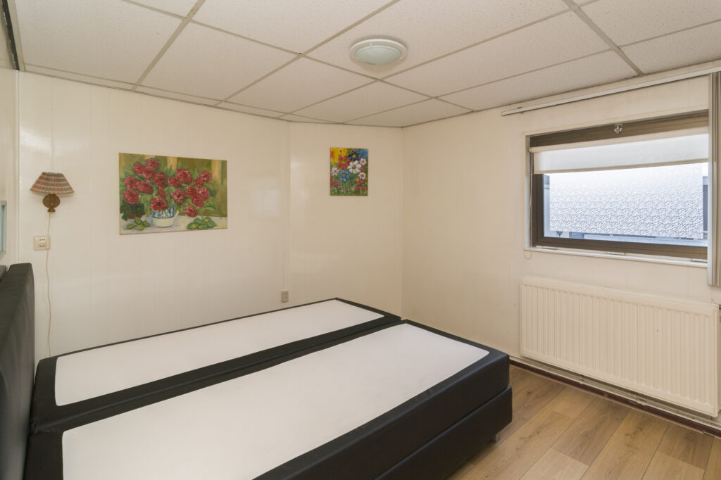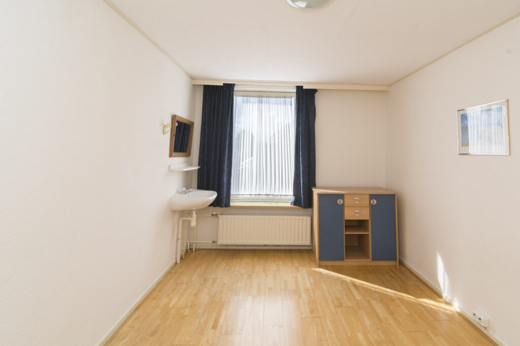 Slaapkamer 1: (ca. 13m²) is gelegen aan de voorzijde en voorzien van laminaatvloer, granol wanden, wastafel en dubbel glas.