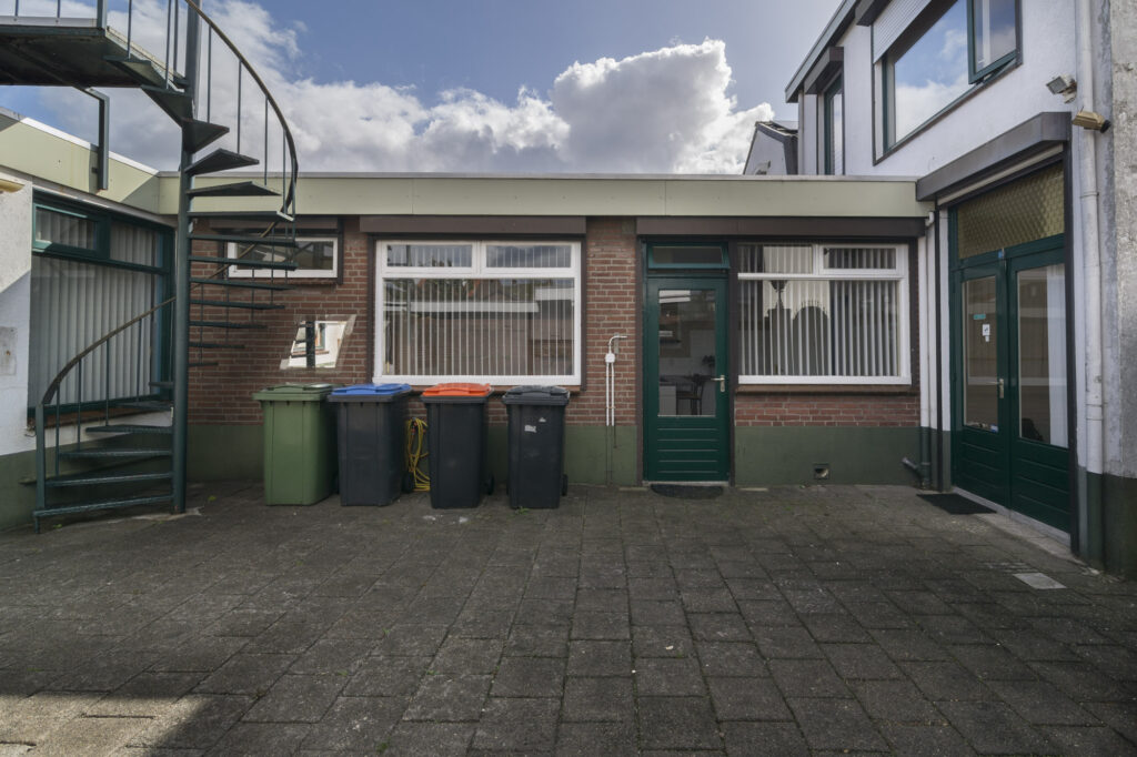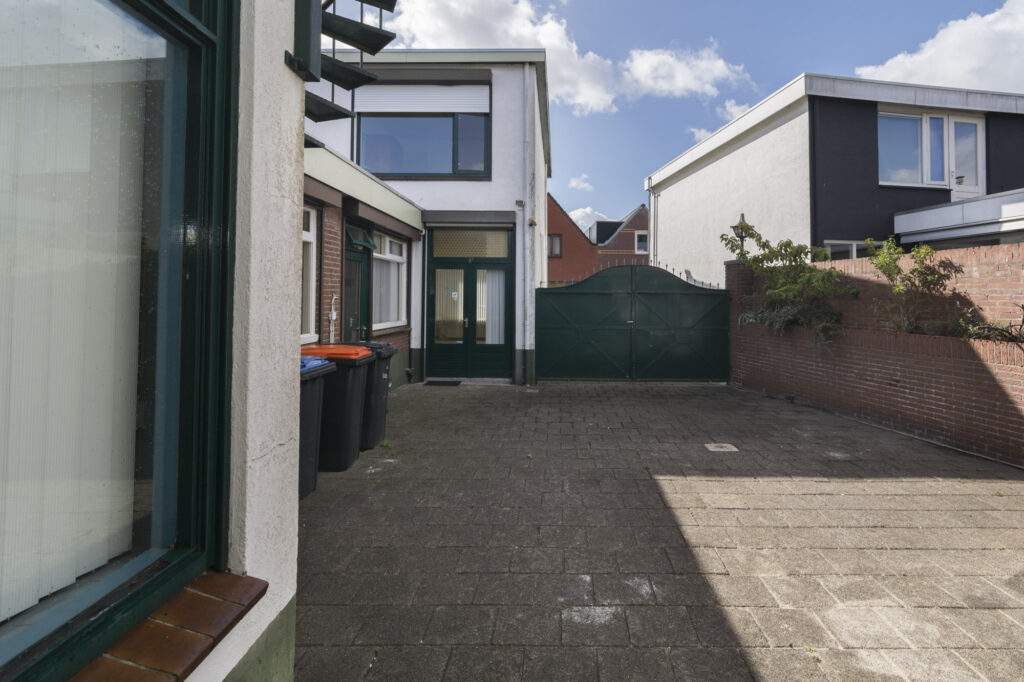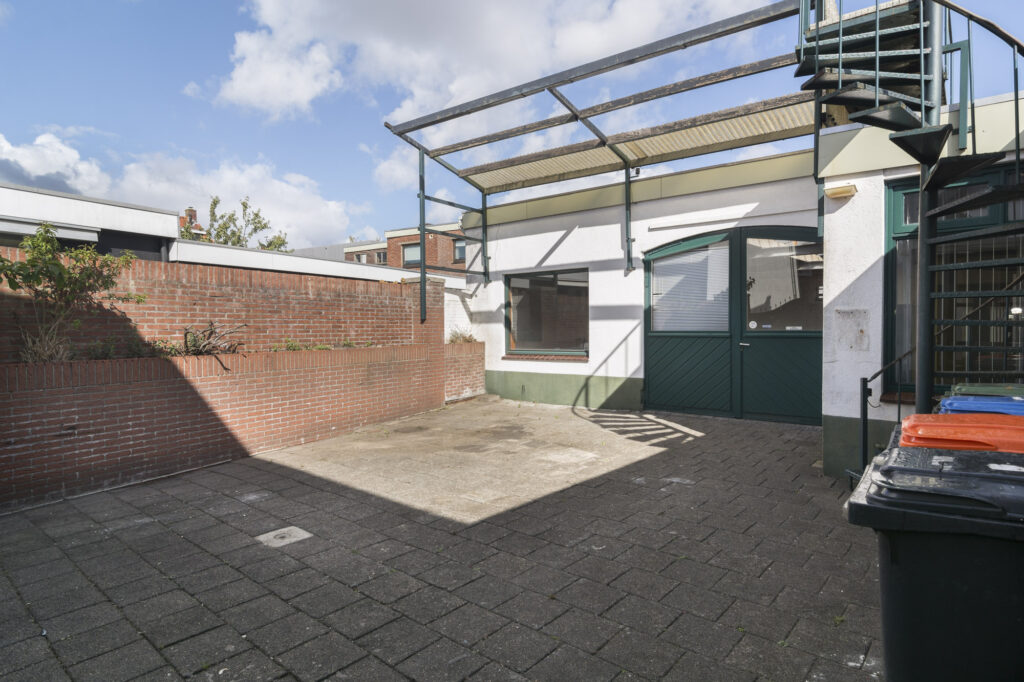 De woning beschikt over een gezellige binnenplaats met poort en directe toegang tot de loods/bedrijfsruimte. Ideaal om wonen en werken moeiteloos te combineren.